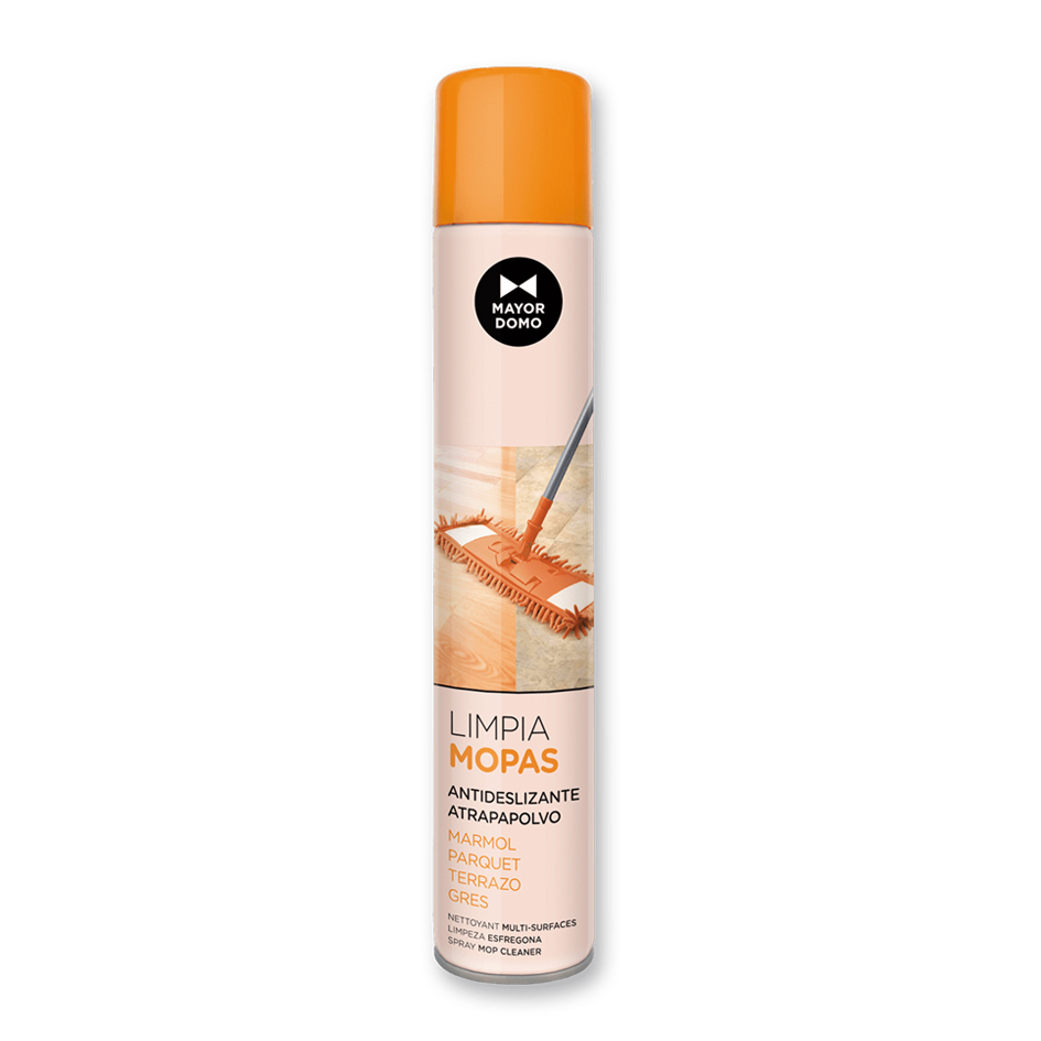 Captador Mopas Spray MAYORDOMO (1.000 c.c.), el Limpiador de Mopas MAYORDOMO, atrapa el polvo y la suciedad realzando el brillo al instante. Está especialmente formulado para retrasar la acumulación de polvo en las superficies.