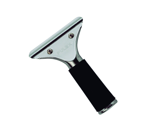 Empuñadura limpiacristales de acero inox. Soporte de acero inox, mango de goma.