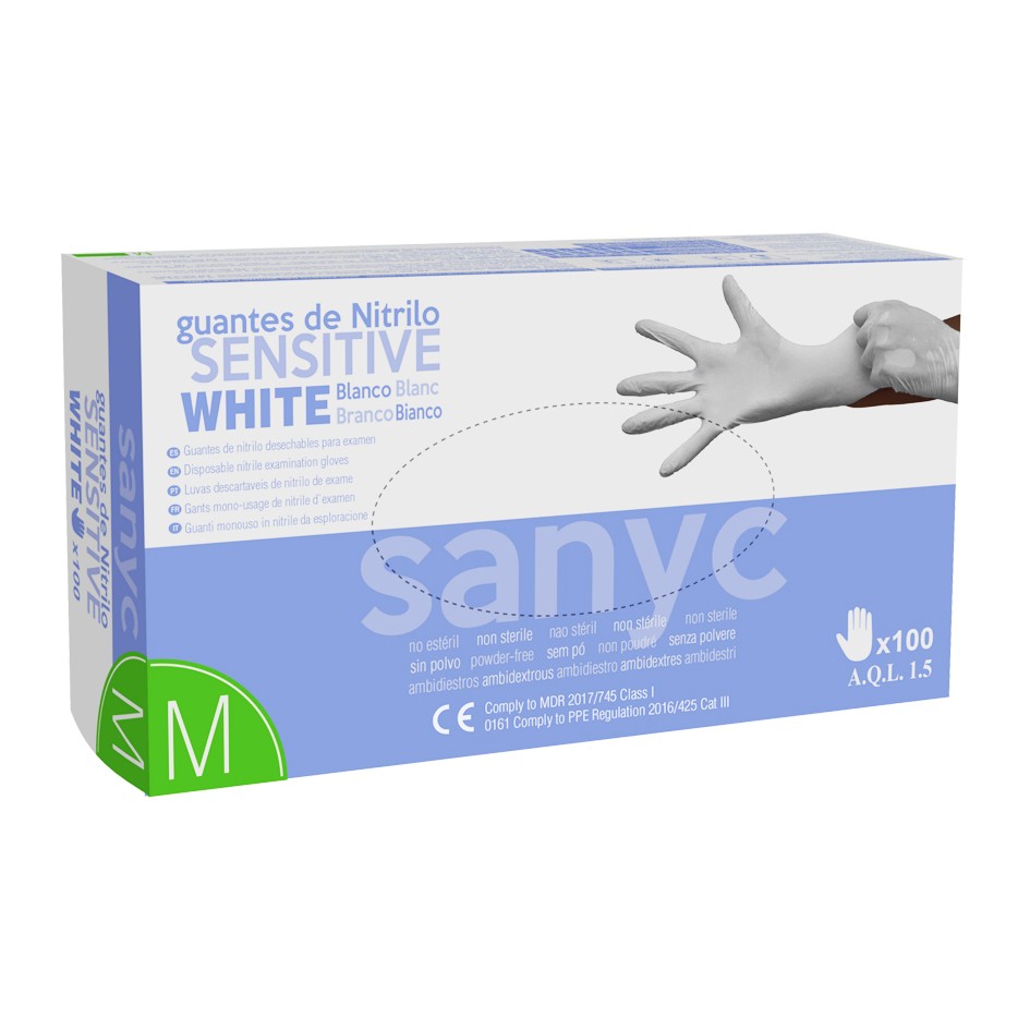 GUANTE NITRILO BLANCO SENSITIVE S/P T-XG C/100 UDS